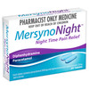 MersynoNight Night Time Pain Relief’s dual action formula, with paracetamol and diphenhydramine, helps turn down night‐time pain and allows for rest and recovery.